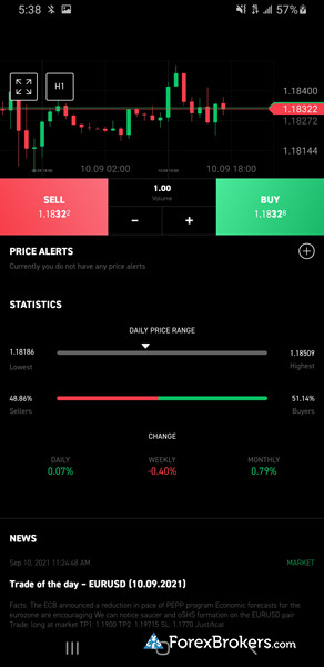XTB and eToro both deliver daily market commentary, real-time forex news from top-tier sources like Bloomberg, Reuters, and Dow Jones, plus sentiment tools that reveal long/short positioning and an easy-to-use economic calendar. Neither broker integrates Autochartist or research from Acuity Trading.