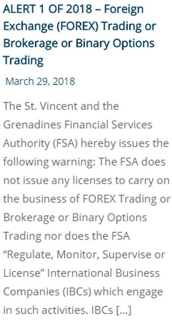 This statement from St. Vincent & the Grenadines shows there is a warning against false claims of registration or license.